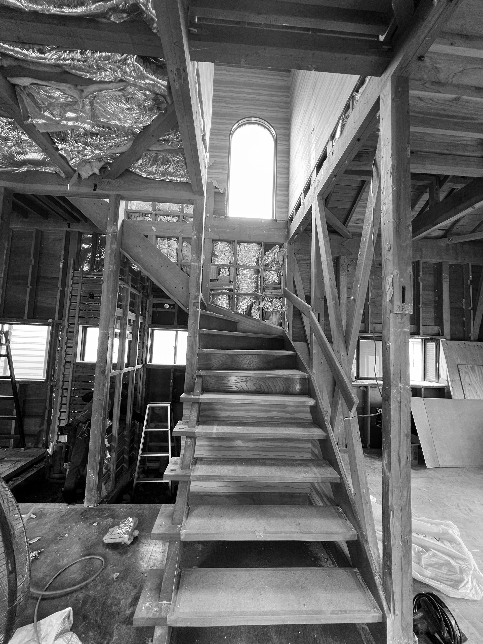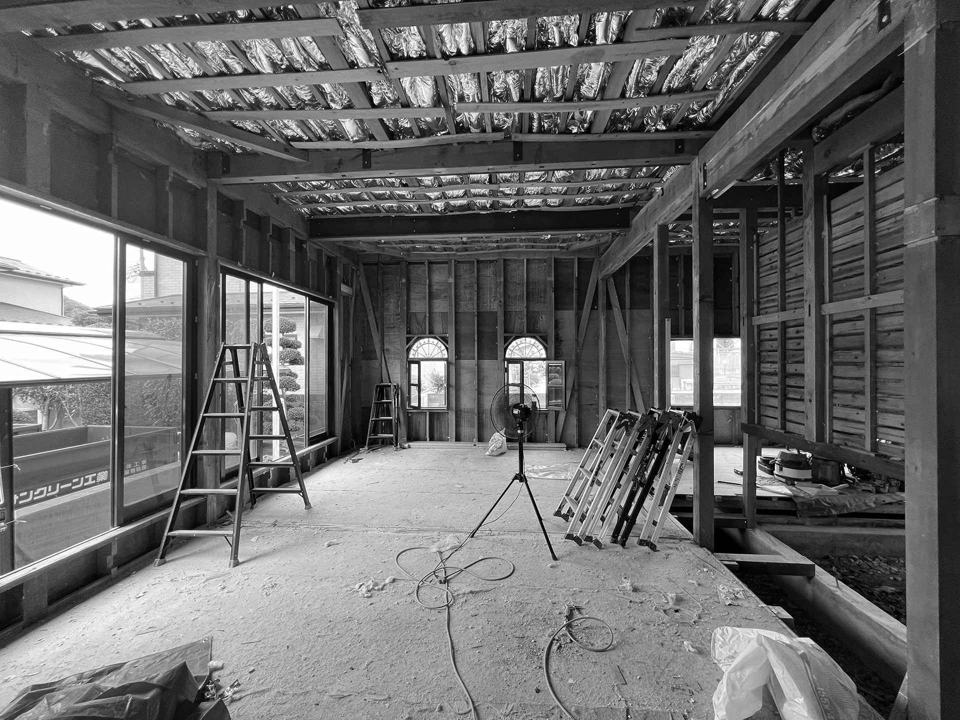 躯体に関しては、壁量計算を行い、筋交いや構造用合板を入れ替えて強化を図るとともに、地震による建物へのダメージを軽減する制震ダンパーを設置しました。また、断熱材の入れ替え、断熱サッシへの交換、内窓の追加などを実施し、冬でも暖かく暮らせる空間を実現。床の傾きは下地材で調整しています。
