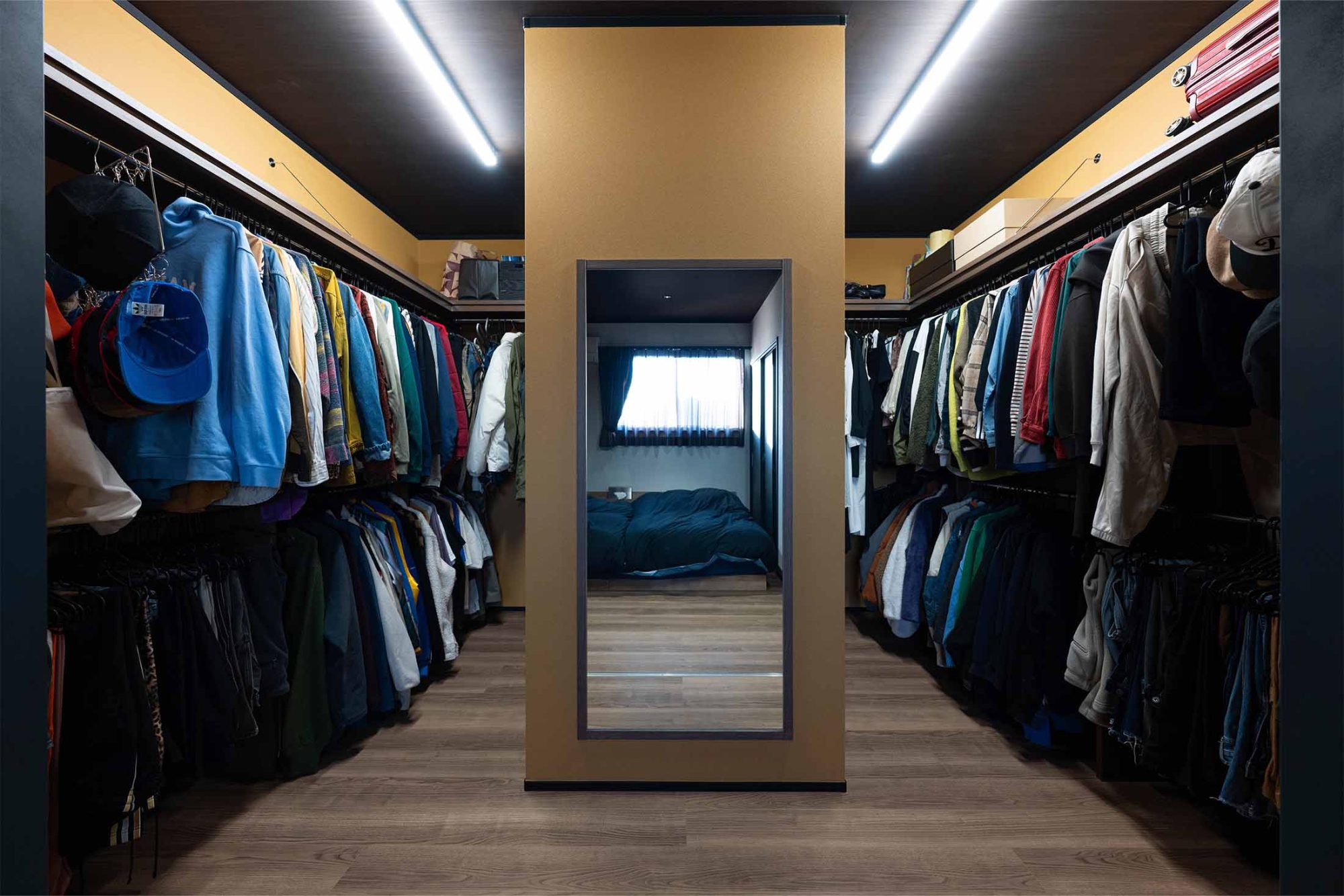 暮らしやすさを追求した間取りもポイントです。玄関ホール、ユーティリティ、ダイニング・キッチン、リビングが回遊動線で結ばれており、その中心にオープン階段を配置したことで上下階の移動もスムーズ。ランドリールームでは洗濯、乾燥、収納ができるので移動の必要がありません。寝室には、夫婦それぞれの衣類を分けてしまえる特大サイズのウォークインクローゼットを備えました。